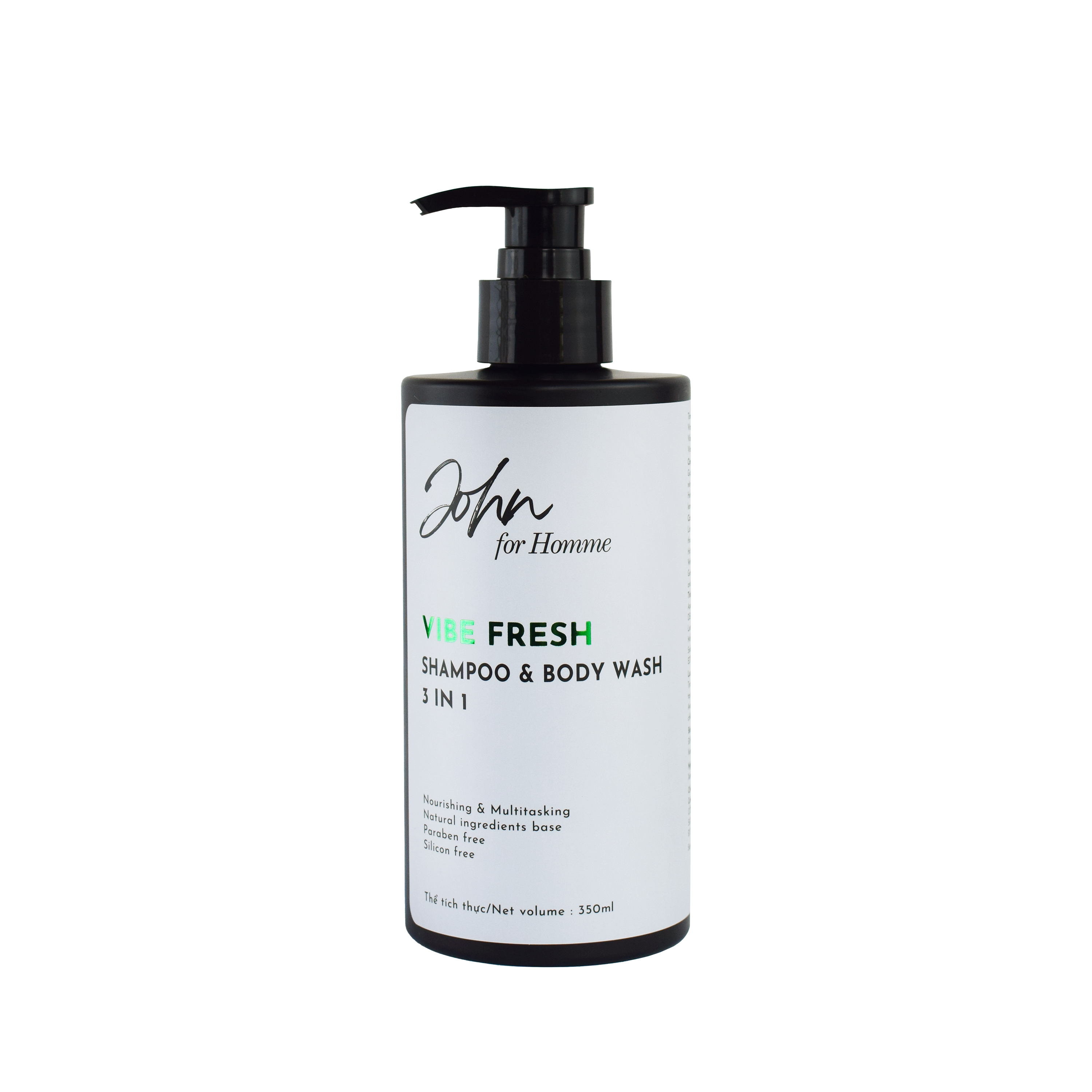 JOHN FOR HOMME VIBE FRESH SHAMPOO & BODY WASH 3 IN 1 350ML – SẠCH MÁT TOÀN DIỆN, DÀNH RIÊNG CHO PHÁI MẠNH